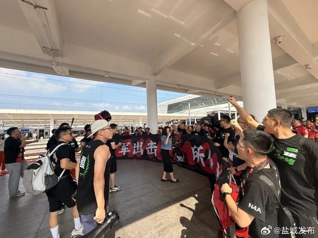 现场氛围热烈,盐城球迷怀揣着热爱,将以最炽热的助威声浪为家乡球队构筑客场最强后盾,让我们一起期待今晚的精彩对决。