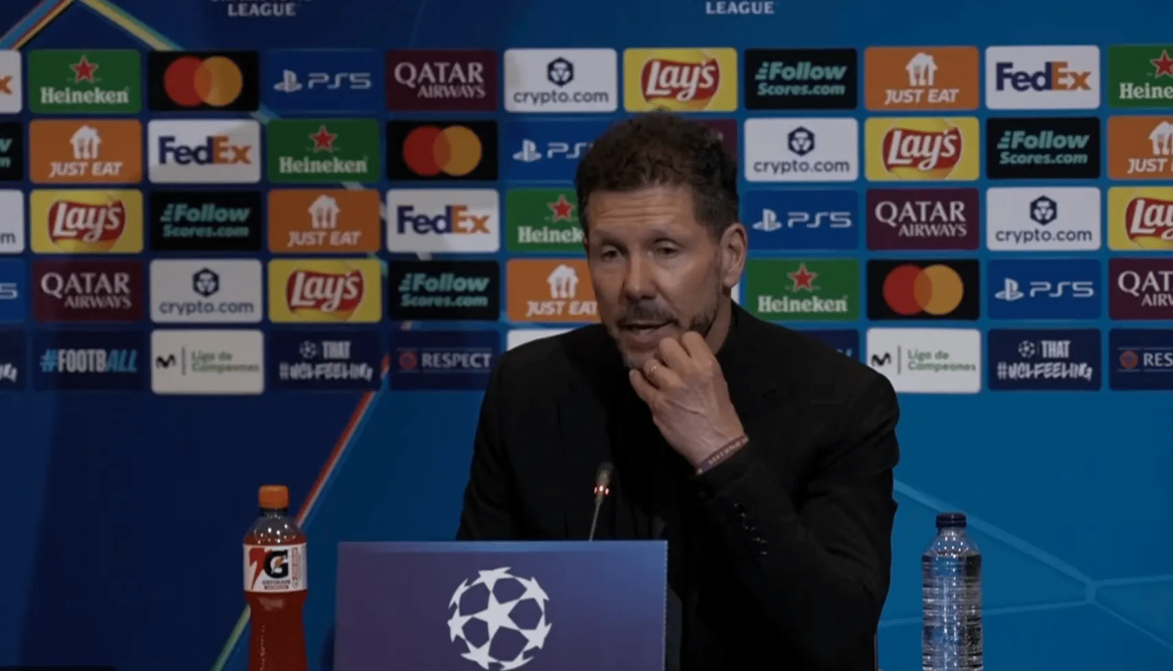 虎扑04月09日讯 欧冠1/4决赛,马竞客场2-0战胜十人巴萨。马竞主帅西蒙尼出席赛后发布会。